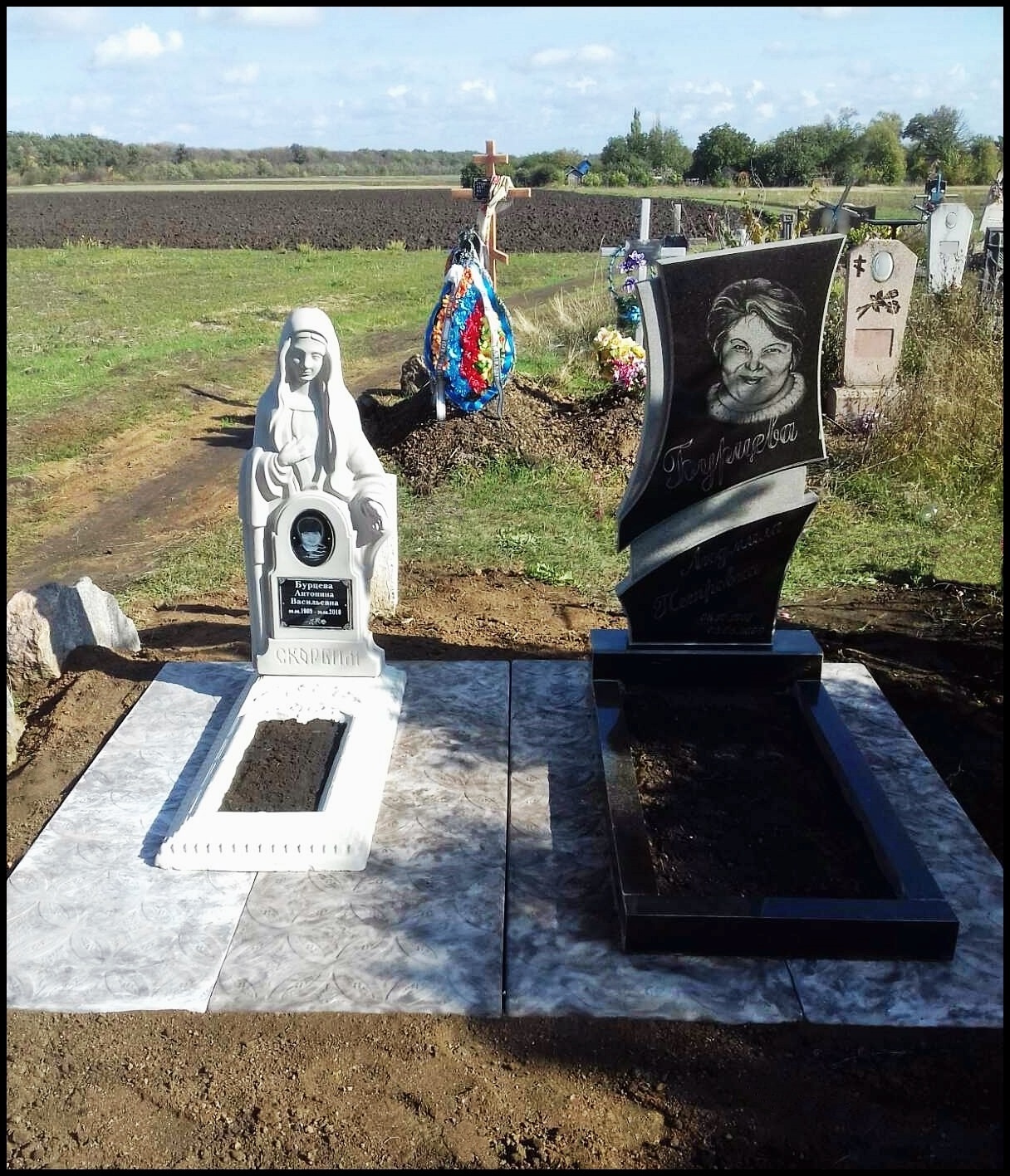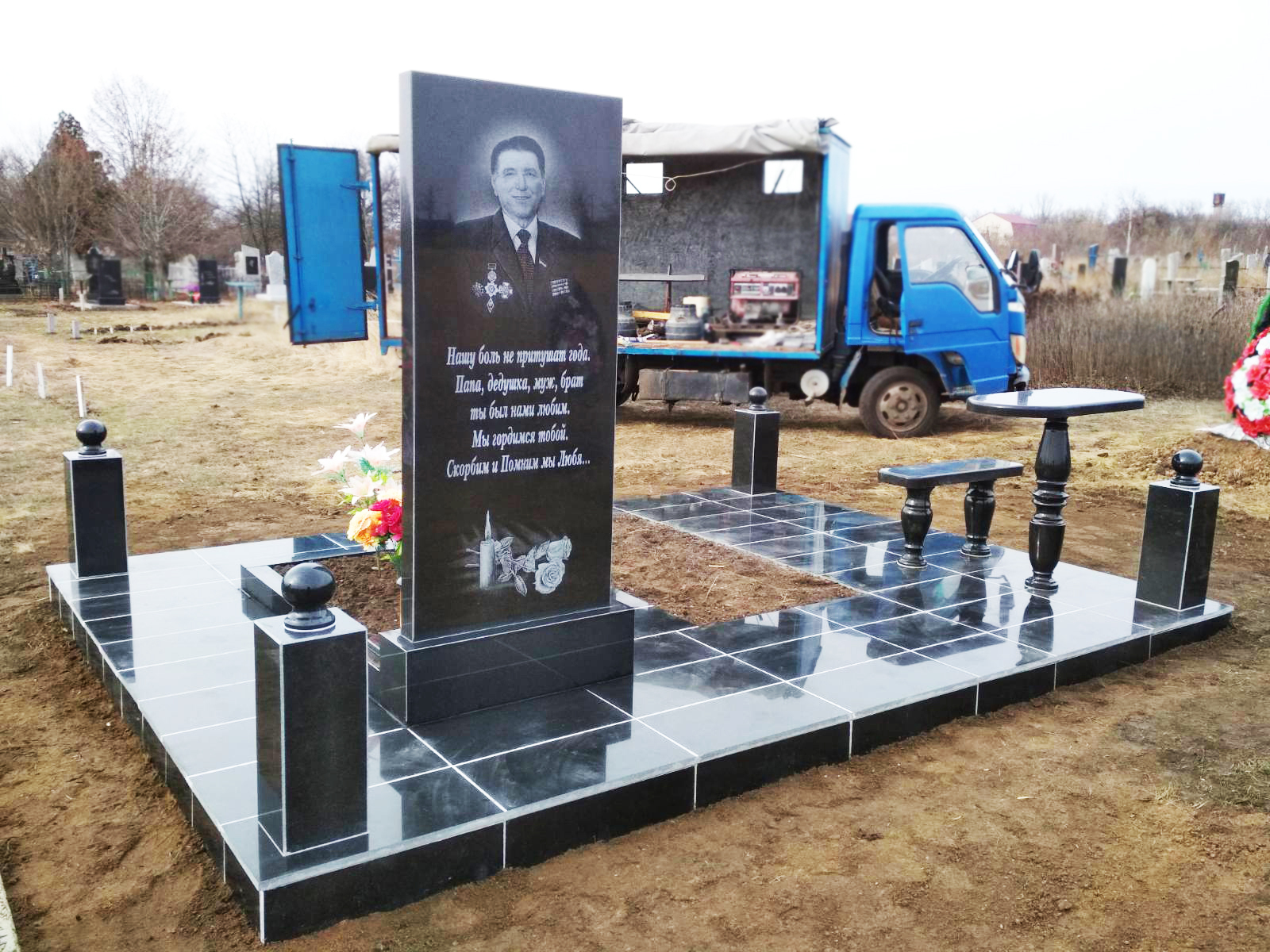 - Замовити гранітні пам'ятники чи комплекси можливо з установкою на кладовищах в с. Васильківка, районі і не тільки.
